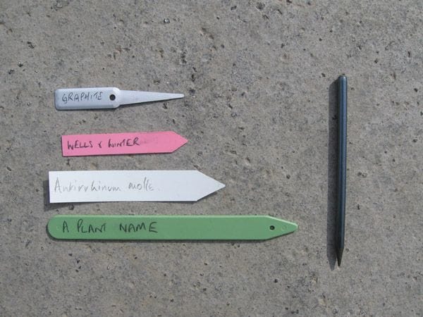 A solid stick of graphite – good for writing on aluminium or plastic labels where the writing will last for many years. Suitably soft to give dark writing so contrasting well with pale labels, thus easy to read at distance.